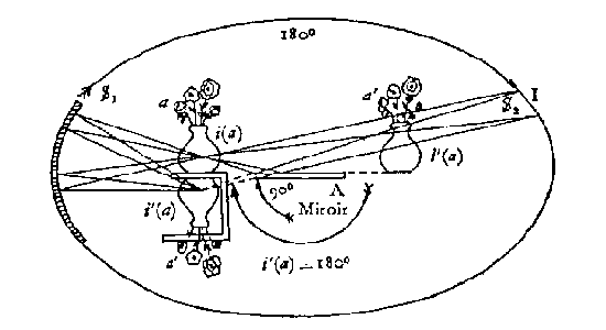 Lacan's twentieth century's Model illustrates the Western World (PsychoSociology) when Cybernetics has turned its horizon and edges into mirrors. For definite Optical Laws the 'cave' (cortex) does not display shadows anymore but reconstructs a virtual image, i(a), while the mouth of the cave functions with a horizontal mirror (like a lake).