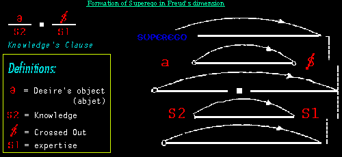 The text/pictures on the black background below ( in the full version) present the first edition of the page. It is an attempt to clarify and break through the inhibition of failure that Freud then Lacan encountered when they engaged in the description of the Superego.