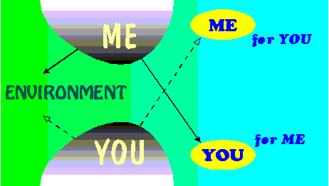 This primal model includes a social component within Ecology - it displays the dual relation (split) between two entities, beside their environment (pooled object) in which they initiates the structure of a Social Link - that develops into a triple layer described by Psychoanalysis.
