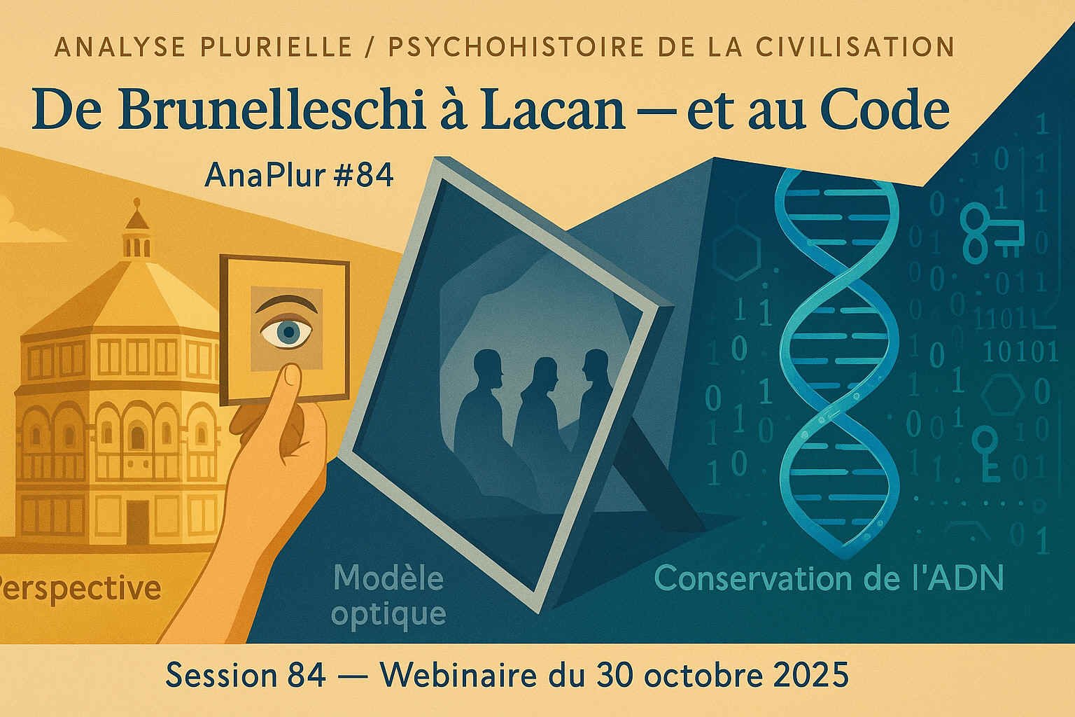 Cette session “charnière” tire des conclusions d’un long cycle de psychohistoire (scène primitive amarnienne) et propose une hygiène sociale et médicale contemporaine : la conservation nominale de l’ADN. Point de départ : un résumé très critique envers Lacan (Notebook LM) invitant à “revenir” à Brunelleschi. Nous en faisons la critique de la critique pour montrer une troisième étape qui intègre et dépasse Brunelleschi (perspective) et Lacan (modèle optique) par l’industrie du code (cryptographie, chiffrage, ADN). À retenir